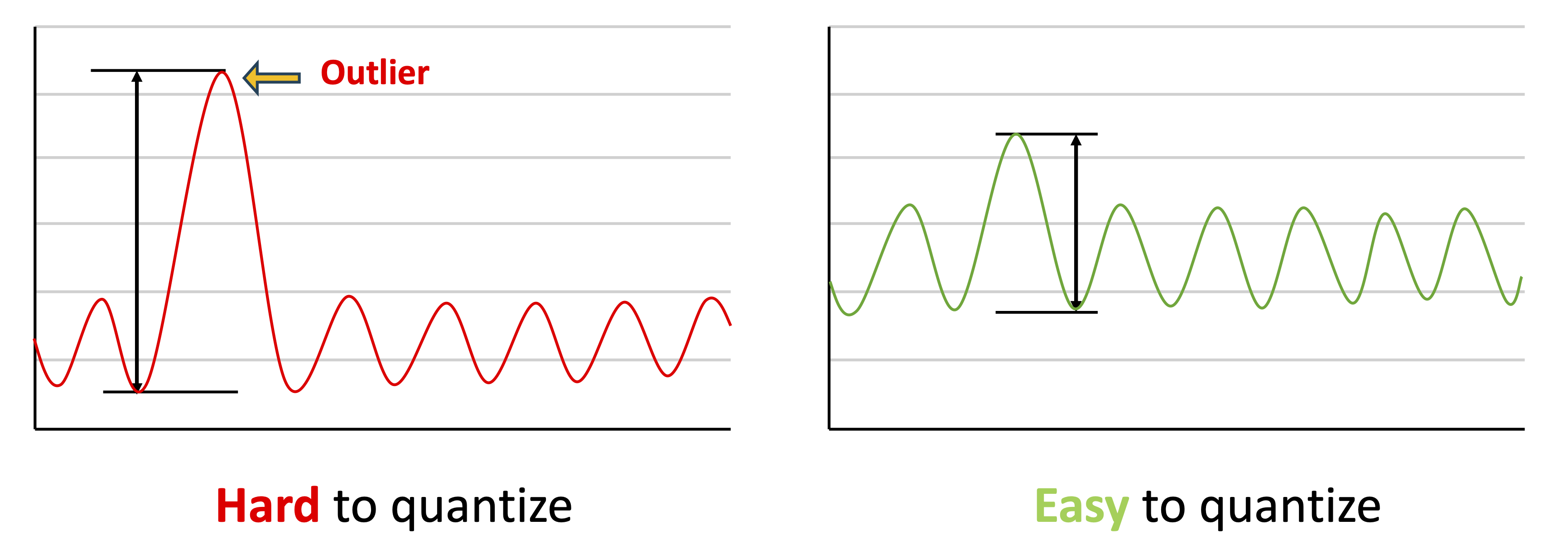 One of major reason of quantization error is Activation Outliers, a common phenomenon in Transformer architectures